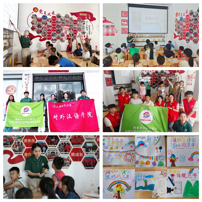 在入选“推普助力乡村振兴”全国大学生暑期社会实践志愿服务活动重点团队的鼓励下,学院持续发挥教育“主阵地”作用,引领青年学生积极投身国家通用语言文字推广事业,以实际行动助力乡村文化振兴。今年暑期,我院推普志愿服务团队以“推普润红土,汉音诵华章”为主题相约三省三县,组织学生奔赴赣鄱大地的江西南城,翻越黔岭深处的贵州桐梓,抵达彩云之南的云南剑川,开展了一系列推普社会实践活动。“推普”青年用青春“声”浪奏响民族团结的同行“乐章”,以青春笔触写好乡村振兴的同心“答卷”。