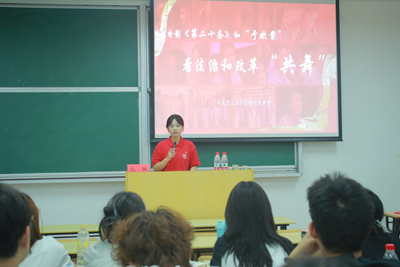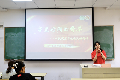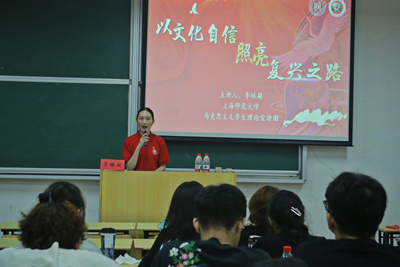 专题报告结束后,马克思主义学院学生理论宣讲团成员开展宣讲。在徐汇校区,宣讲团成员以《字里行间的脊梁——从抗战家书读懂民族精神》为主题,通过深情讲述李云鹏、谢晋元等革命先辈的家书故事,生动展现了共产党人的家国情怀与牺牲精神,让学员们从历史细节中感悟党的初心使命。奉贤校区宣讲团则聚焦党的二十届三中全会精神,围绕“赓续千年文脉 铸就时代新魂”和“从电影《第二十条》看法治与改革的共舞”两大主题,从文化自信与法治建设两个维度,结合生动案例与理论分析,阐释党的最新理论成果,激励学子坚定理想信念、勇担时代重任。