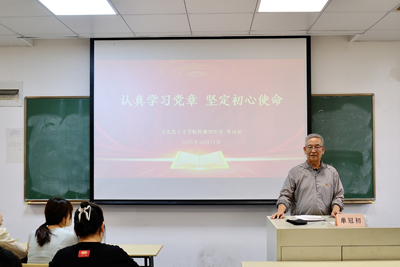 在徐汇校区三教301教室,马克思主义学院特邀党建组织员、党史研究专家单冠初教授作题为《认真学习党章,坚定初心使命》的专题报告。单教授从近代中国救亡图存的历史背景切入,深刻阐述了中国共产党诞生的历史必然性,系统解读了党章的演进历程与重要内涵,重点分析了经党的二十大修订通过的新党章中“中国式现代化”“共同富裕”等新内容的理论价值与现实意义。他强调,学习党章不仅要知其然,更要知其所以然,要在历史与现实的对照中不断深化对党的理论创新和实践创新的理解。